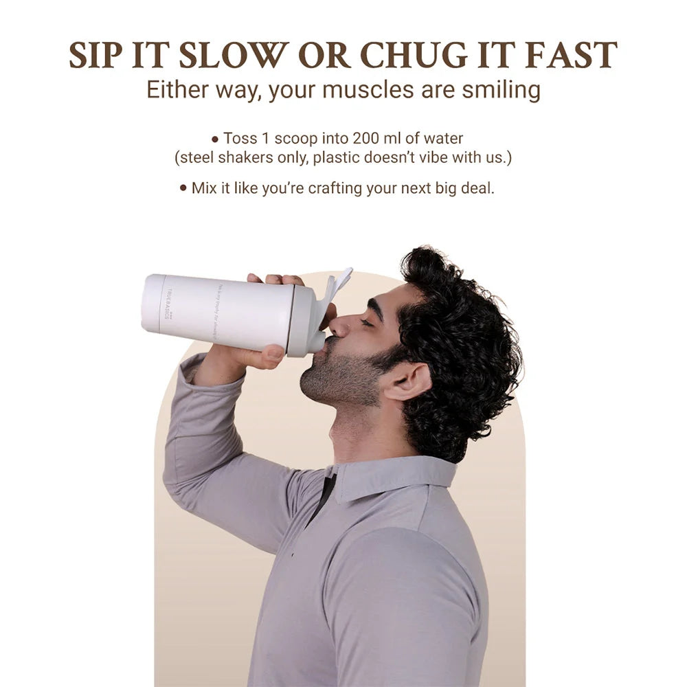 Mix one scoop with 200–250 ml of water, milk, or your preferred shake. Ideal post-workout, with breakfast, or as a midday protein boost.